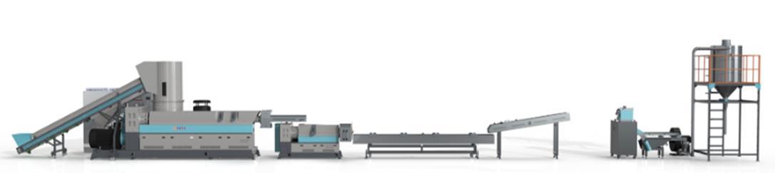 Línea de reciclado de películas por granulación y extrusión de tres funciones en una